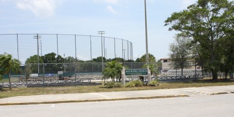 By Eddie Michels on May 2, 2017The steel support beams from the former bleacher sections at Jack Russell Stadium in Clearwater have been moved into place behind home plate. The former first and third base stands are now going to be put up behind home plate for seating. The stadium is presently being used by Clearwater High School and the St. Petersburg College baseball teams in season. There is a possibility that in 2018 the FSL Dunedin Blue Jays will use the stadium for their home game while Florida Auto Exchange Stadium in Dunedin is being renovated.