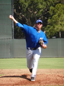 By Eddie Michels on April 30, 2012CLEARWATER, Fla.–Toronto Blue Jays RHP Trystan Magnuson (sore right shoulder) tosses two shutout innings against the Phillies extended spring squad at the Carpenter Complex on Saturday April 28, 2012. The nephew of NHL’er Keith Magnuson, Magnuson allowed two hits and struck out one on 21-pitches with a 93-94 MPH fastball during his third extended spring appearance. “He is building up his strength,” said Blue Jays rehab pitching coordinator Rick Langford, “The ball is coming out of his hands nice and easy.”
