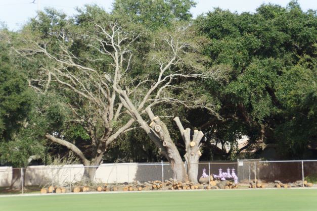 This photo taken on September 15, 2015 shows a contractor hired by the Toronto Blue Jays cutting down a healthy oak tree on the City of Dunedin owned Englebert Complex Field One. I personally would never have noticed this act except it was brought to my attention by the Toronto Blue Jays Florida Operations staff, much like the illegal dumping into the wetlands adjacent to the complex. As of this date there appears to have not been a permit issued to cut down this tree, the fine I have been told by the Blue Jays staff is $196,000.00. A tidy sun for the tax payers of Dunedin. EDDIE MICHELS PHOTO