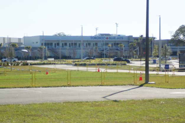 DUNEDIN, FLA.–It will probably be the last time one will see the parking lot at the Toronto Blue Jays player development complex with just four cars in it for about nine months. With the major leaguer’s still on lockout the minor league players will start their spring workouts in the next week or so bringing the lot to capacity. Again for the fourth spring training fans will not be allowed entry to the facility for major and minor league player workouts. In fact all adjoining streets to the facility are no parking.