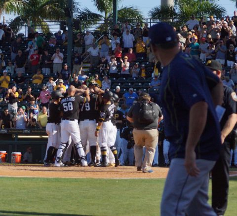 By Eddie Michels on March 11, 2017RHP Ryne Stanek, (left), took the loss on Friday as the Tampa Bay Rays dropped a 4-1 decision to the Pittsburgh Pirates at LECOM Park. Stanek lasted just a third of an inning before allowing a walk off three run homer to the Pirates Edwin Espinal. The right-handers line was three runs, two earned on one hit and he walked a batter.