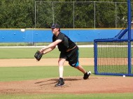 By Eddie Michels on August 8, 2011DUNEDIN, Fla.–LHP Brian Tallet (chest cartilage) whom the Blue Jays reacquired from the Cardinals on July 27 pitches live BP on Monday at the team’s Englebert Complex in Dunedin. Tallet, who pitched for Toronto from 2006-2010 was 0-1 with a 8.31 era in 18-games with the Cardinals this year. “He looked okay throwing 25-pitches,” said Jay pitching rehab coordinator Rick Langford of Tallet, “He used all his pitches.” Tallet could pitch a simulated game as soon as Thursday if there are no problems from today’s outing. (Photo by EDDIE MICHELS)