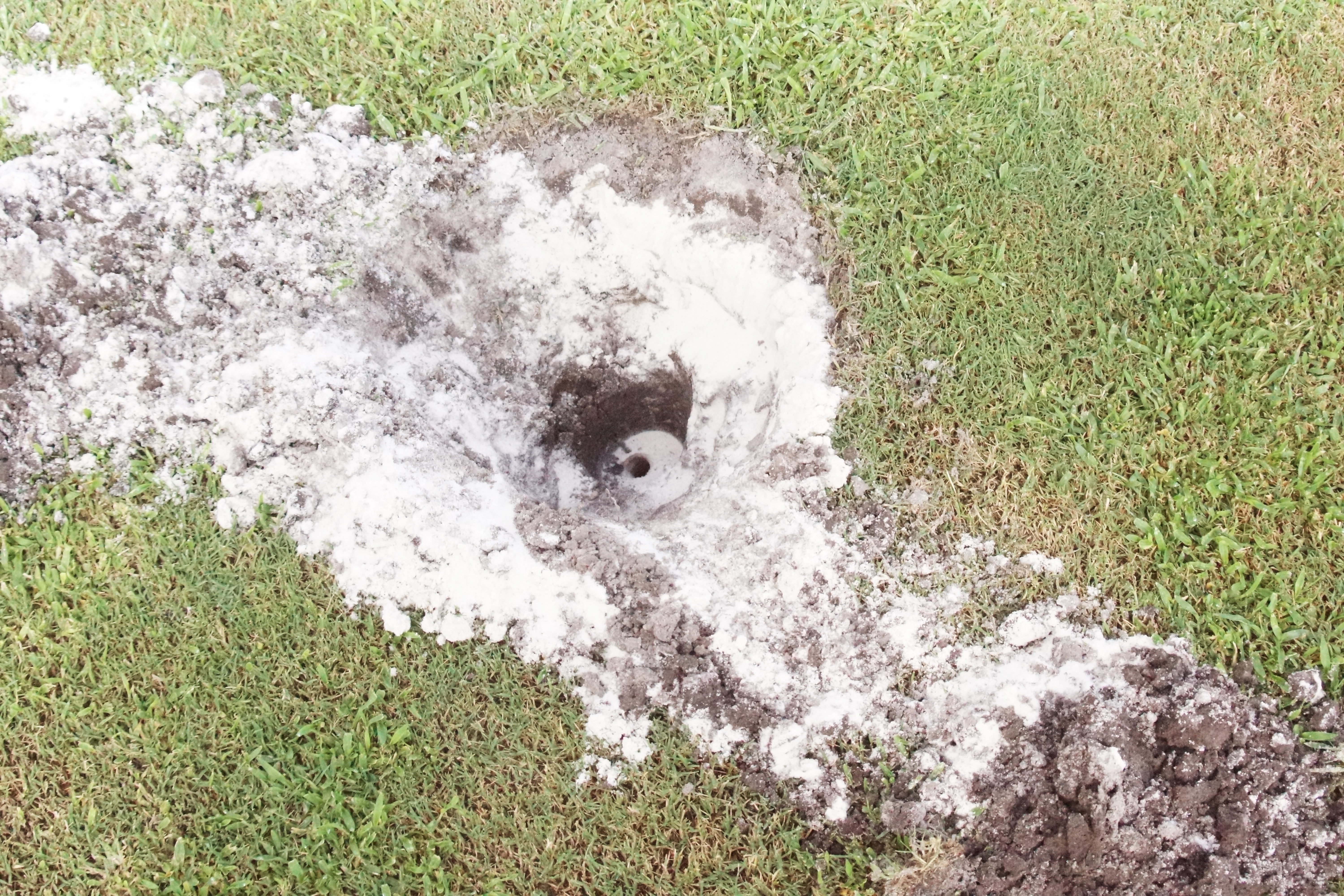 By Eddie Michels on October 5, 2015The Toronto Blue Jays are finally redoing field one at their Mattick Complex in Dunedin, the field where supposedly a sprinkler head caused damage to outfielder Michael Saunders left knee. The hole pictured is where the supposed culprit of a sprinkler head had been for about 30-plus years causing no reported injuries to anyone except Saunders. It’s understood that the head is presently hiding amongst those others removed from the field. Saunders on the other hand is said will be ready to return to the Blue Jays next season.